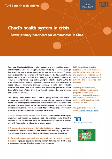 This is a selection of policy briefs written by TUM students as part of the Master's and Bachelor's course in "Global Health" and in "International Development, Poverty and Inequality" or based on their completed MSc or BSc theses.