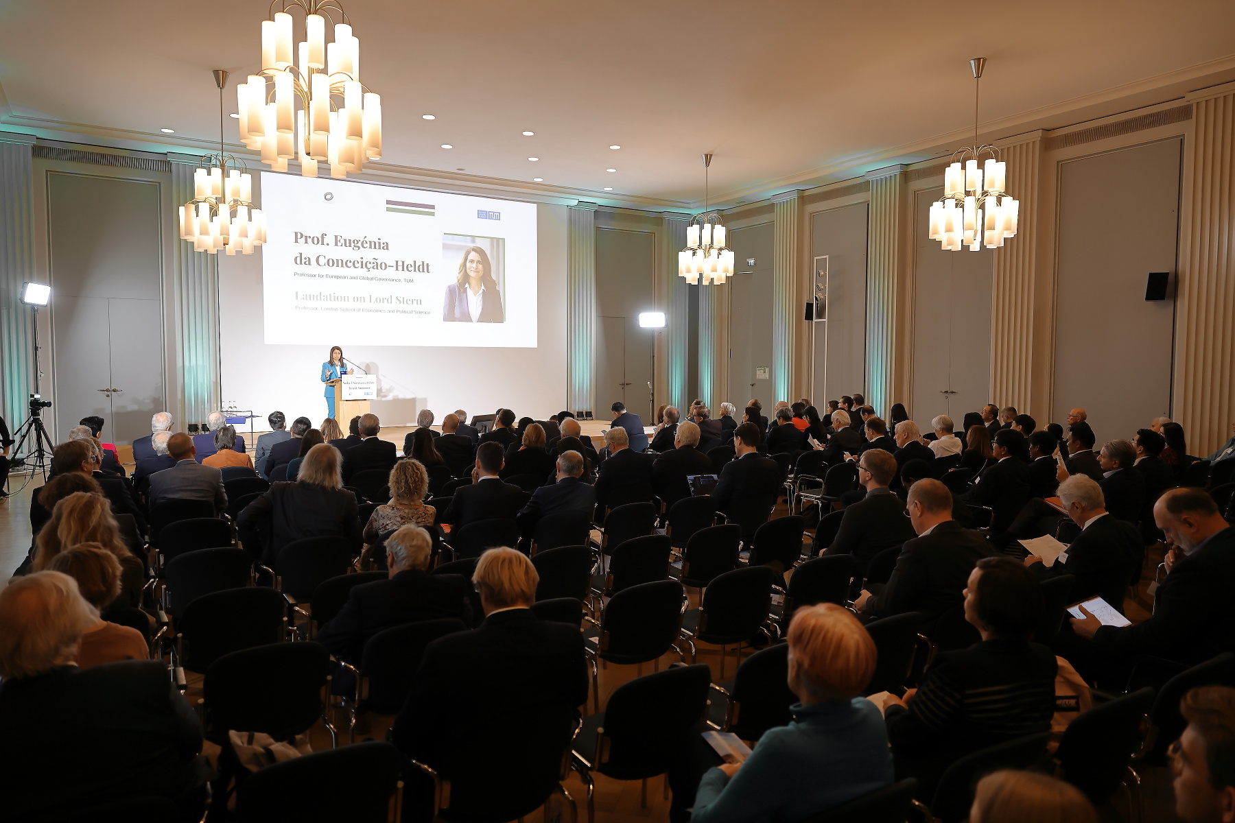 Am 9. November haben der Nobel Sustainability Trust (NST) und die Technische Universität München (TUM) in der Bayerischen Akademie der Wissenschaften in München den "Sustainability Award supported by NST" für herausragende Forschungs- und Entwicklungsarbeiten in den Bereichen nachhaltige Energie und Klimawandelökonomie verliehen. Mit dem Preis werden Personen oder Institutionen ausgezeichnet, die wichtige Entdeckungen mit potenzieller Bedeutung für das Wohlergehen der Menschheit gemacht haben. Prof. Eugénia da Conceição-Heldt war die Laudatorin für den Sustainability Award for Leadership in Implementation, der an Lord Nicholas Stern von der London School of Economics and Political Science verliehen wurde.