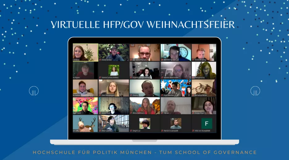 Eine virtuelle Online Weihnachtsfeier, organisiert von der Fachschaft & Studierende der HfP/GOV, hat in diesem disruptiven Corona-Jahr Studierende, Mitarbeiter*innen und Professor*innen der HfP/GOV auf besondere Weise zusammenführt. Neben einer Einführung durch die Fachschaft, Reformrektorin Prof. da Conceição-Heldt und Prof. Schreurs, gab es auch Spiele und ein Quiz. Trotz Corona konnte die HfP/GOV-Gemeinschaft so das Jahr mit einem gemeinsamen Event ausklingen lassen!