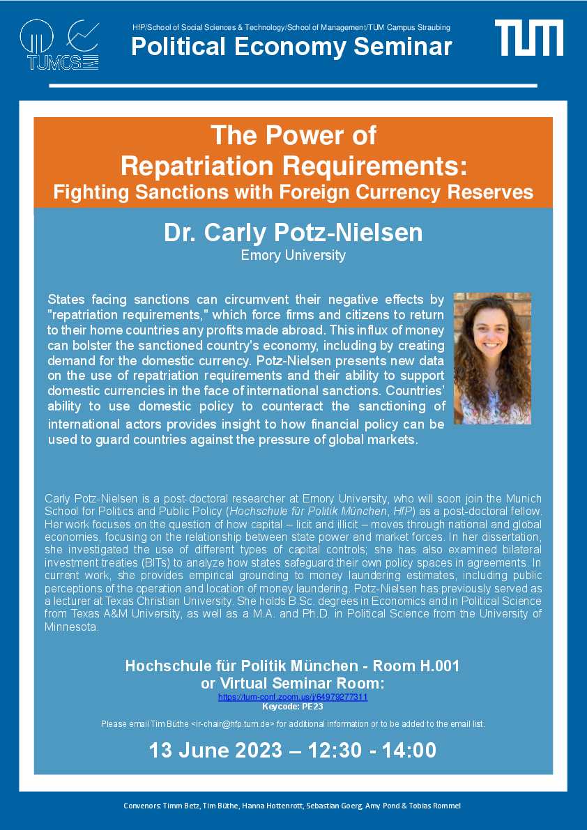 Dr. Potz-Nielsen will soon join us at HfP as a postdoctoral fellow, so this is also a nice opportunity to get to know her – including for PhD students who might be interested in taking the applied methods course ("Global Policy Evaluation: Methods and Applications") that she will be offering as a block seminar in late Sept/early Oct.