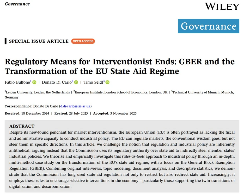 In a new open-access Governance article Donato Di Carlo, Fabio Bulfone and Timo Seidl argue that this shift amounts to a form of regulatory industrial policy: the Commission increasingly governs industrial strategy by shaping how member states may subsidize firms and technologies.